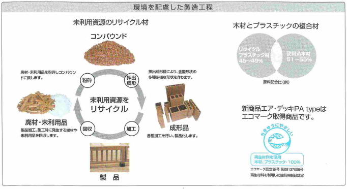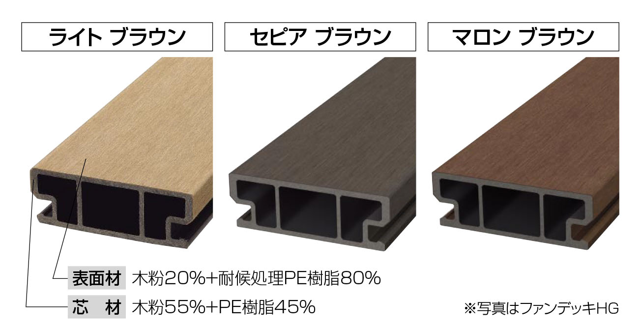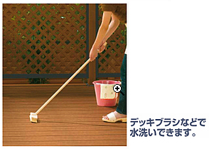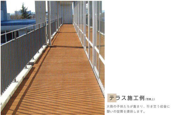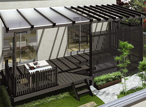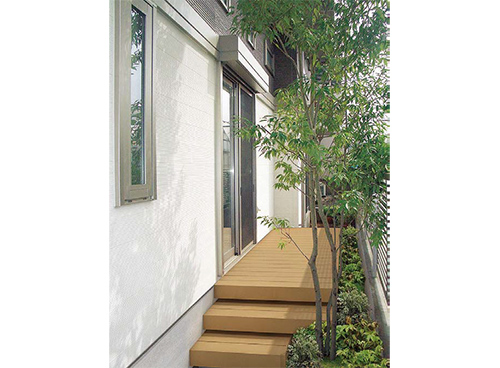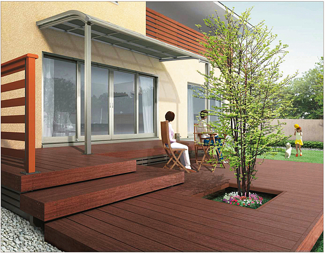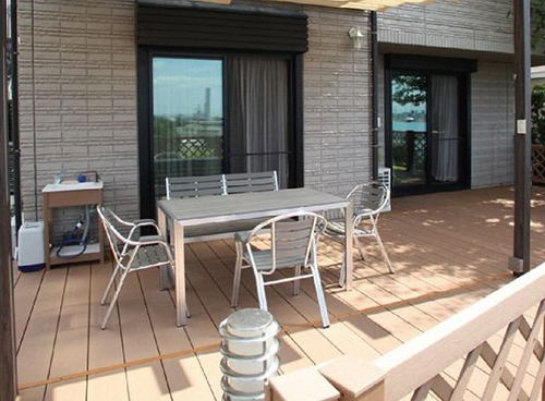 シロアリや腐朽菌を寄せ付けず、耐久性・対候性に優れております。夏季のデッキ表面温度上昇を制御する「遮熱デッキ」仕様で快適に安心してお使いいただけます。